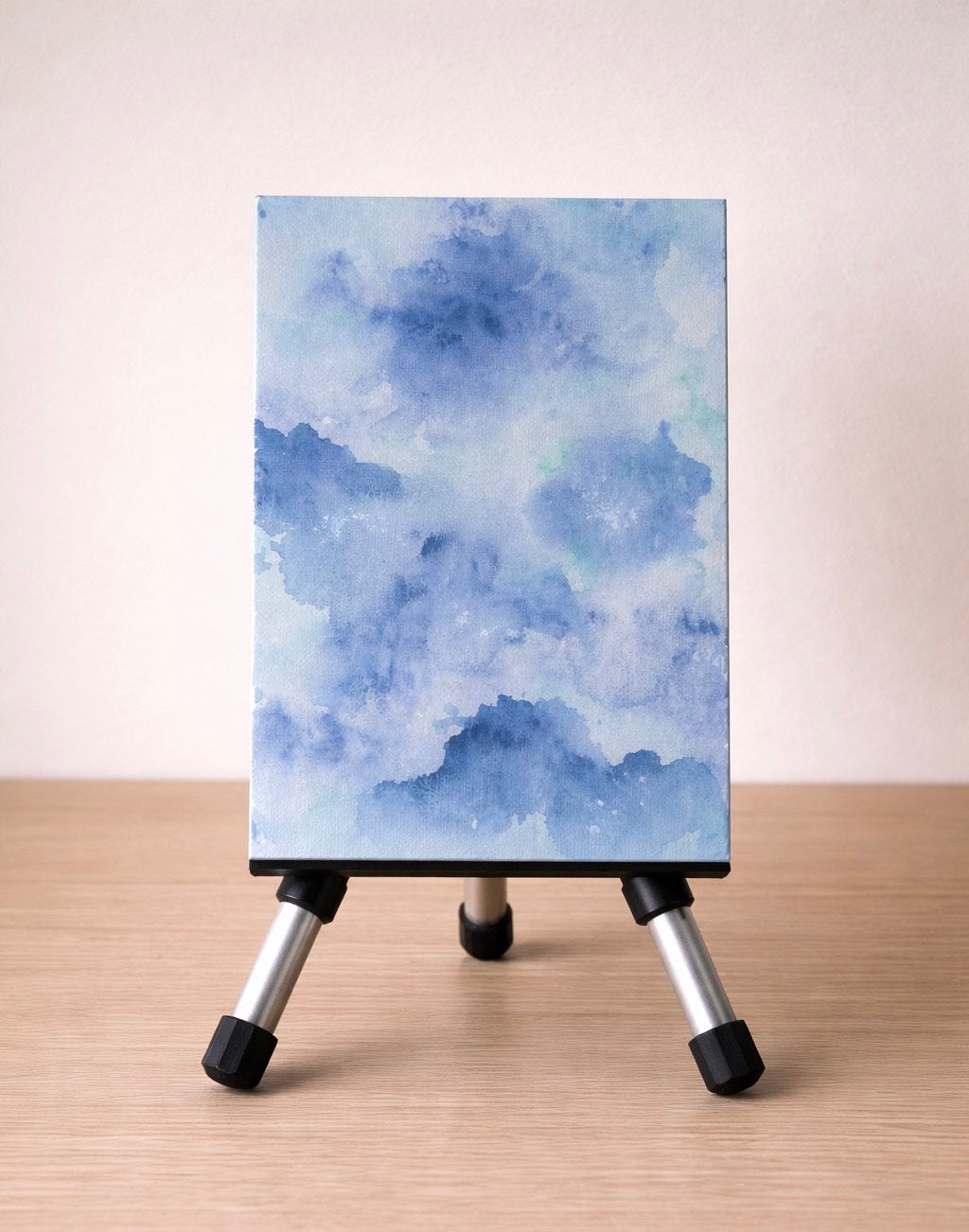 A serene abstract painting inspired by open skies and drifting clouds. Subtle shades of blue create a sense of calm, balance, and stillness.