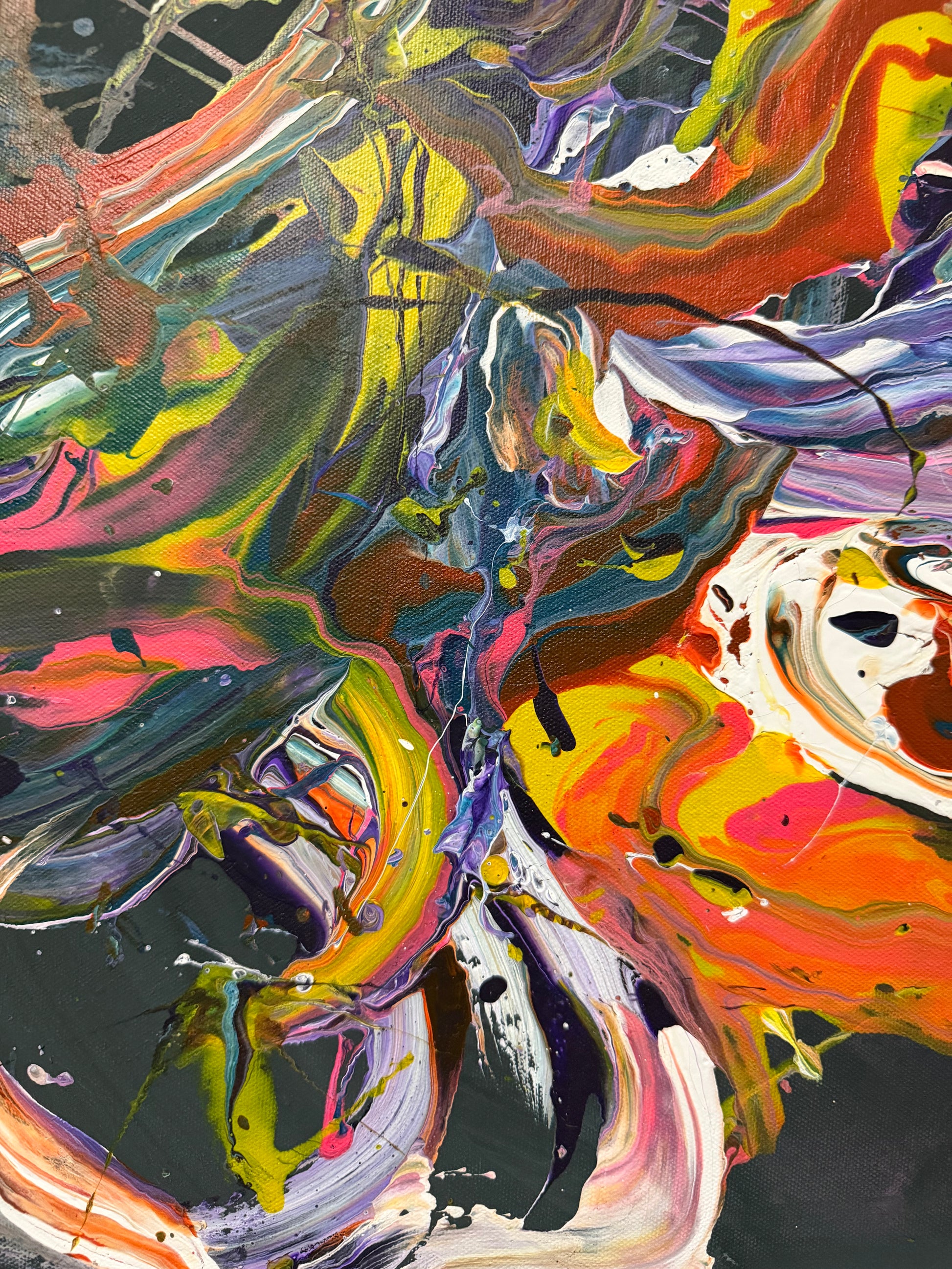 Mixed Emotions was created during a time when nothing felt singular or clear. The colors and movements came from painting without overthinking—allowing different feelings to exist on the canvas at the same time.